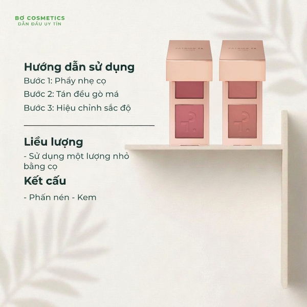 Hãy mua sắm bộ sưu tập mỹ phẩm PATRICK TA ngay hôm nay tại Bơ Cosmetics - Dẫn Đầu Uy Tín và nâng tầm trang điểm của bạn.