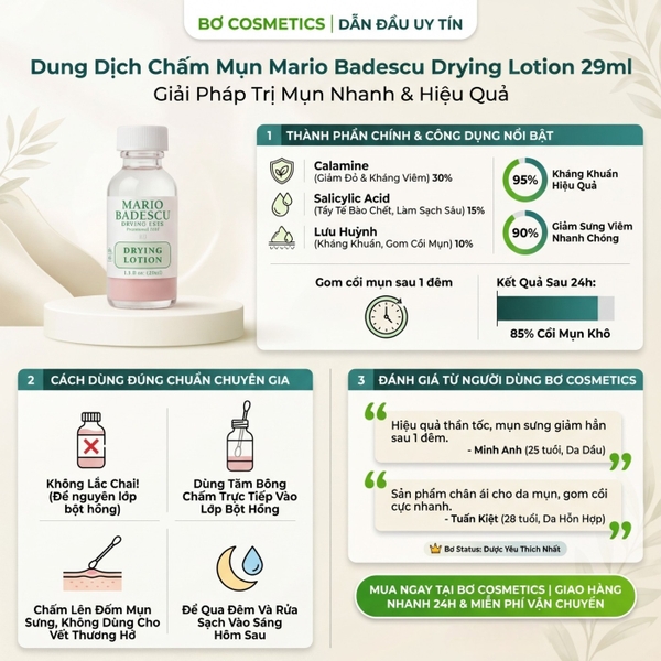 Cách sử dụng Dung Dịch Chấm Mụn Mario Badescu Drying Lotion hiệu quả: