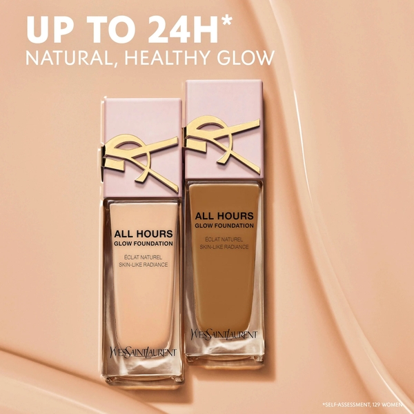 Kem Nền YSL All Hours Glow Foundation với công thức dạng serum được bổ sung axit hyaluronic, Niacinamide và cánh hoa nhài mang lại lợi ích dưỡng ẩm chuyên sâu, chăm sóc da - Làn da trông rạng rỡ và căng mọng hơn rõ rệt.