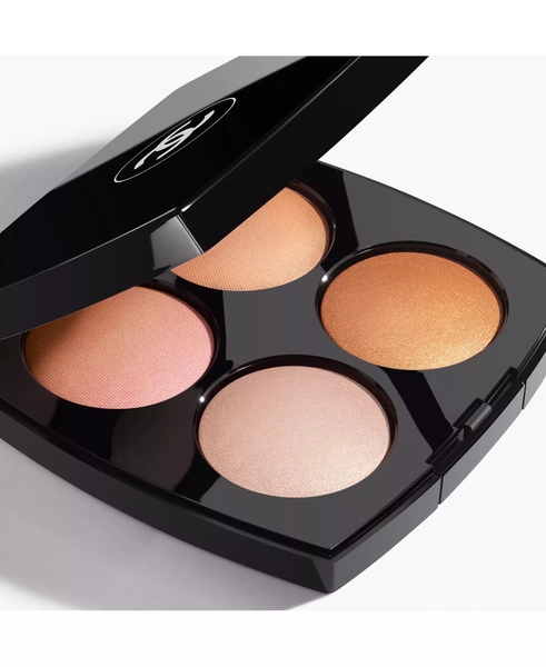 Bảng Phấn Mắt & Bắt Sáng Chanel Jeux de Lumieres phiên bản giới hạn với bốn sắc thái satin lấp lánh: hồng san hô lấp lánh, vàng hồng, bạc hồng lấp lánh và vàng đồng lấp lánh - Được thiết kế để làm nổi bật khuôn mặt, đôi mắt và vùng da cổ với ánh nhũ nhẹ nhàng