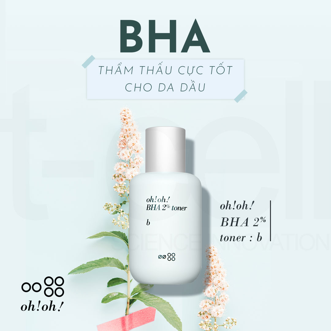 Nước Cân Bằng Tẩy Tế Bào Chết, Làm Sạch Sâu Da Oh!Oh! BHA 2% Toner phù hợp với làn da dầu mụn.