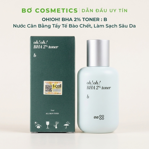 Nước Cân Bằng Tẩy Tế Bào Chết, Làm Sạch Sâu Da Oh!Oh! BHA 2% Toner là nước cân bằng làm sạch sâu chuyên biệt dành cho da dầu mụn. Với nồng độ 2% BHA kết hợp cùng Alpha-bisabolol giúp loại bỏ tế bào chết, mụn đầu đen và bã nhờn hiệu quả mà vẫn duy trì độ pH lý tưởng cho da.