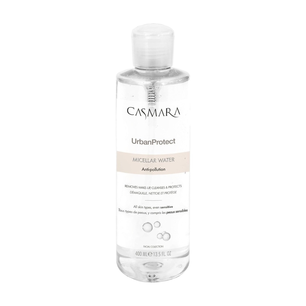 Nước Tẩy Trang Casmara Urban Protect Micellar Water giúp loại bỏ lớp trang điểm, làm sạch và bảo vệ da. Hoạt chất chống ô nhiễm tiên tiến của sản phẩm bảo vệ da mặt bằng cách tạo ra một lớp màng giúp tăng cường hàng rào bảo vệ da mang lại làn da thoáng sạch, mềm mịn sau khi sử dụng.