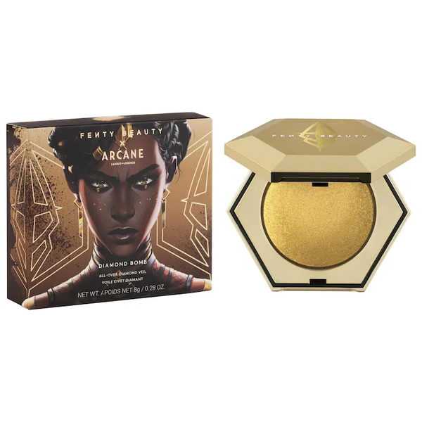 Phấn Bắt Sáng Fenty Diamond Bomb All-Over Diamond Veil được lấy cảm hứng từ chiếc váy pha lê Rihanna mặc tại CFDA 2014 - "Bạn không bao giờ có đủ kim cương! Đây là thứ gần giống nhất với việc tắm trong đó. Độ lấp lánh trong sản phẩm này thật điên rồ!" - Rihanna
