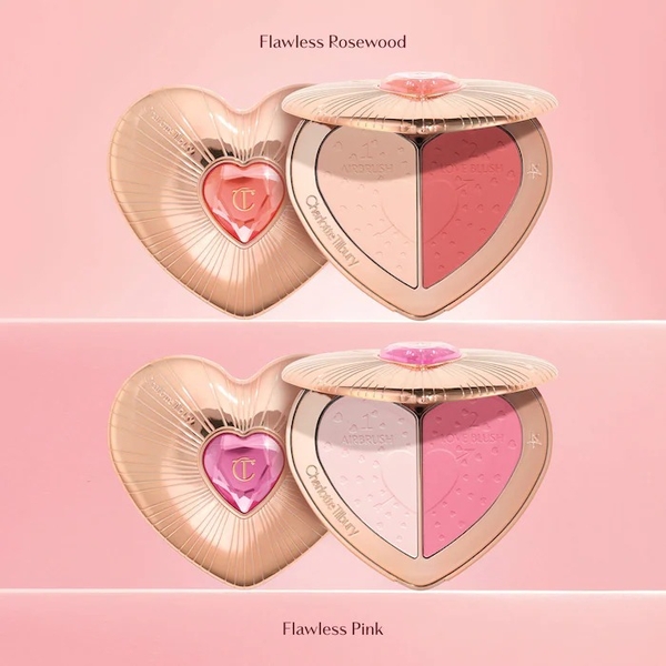 Hoàn hảo với lớp nền Light Peach Awakening Airbrush Flawless, phấn má hồng Love-Blush với hiệu ứng làm mờ tông hồng gỗ Rosewood sang trọng.