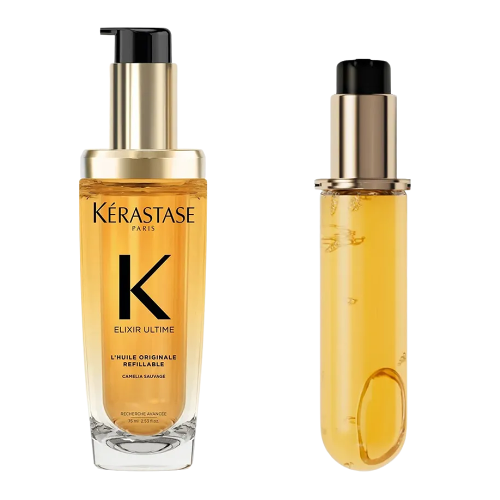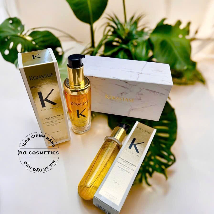 Set Dầu Dưỡng Tóc Kerastase Elixir Ultime L'Huile Originale + Refill phù hợp chăm sóc tóc xoăn.