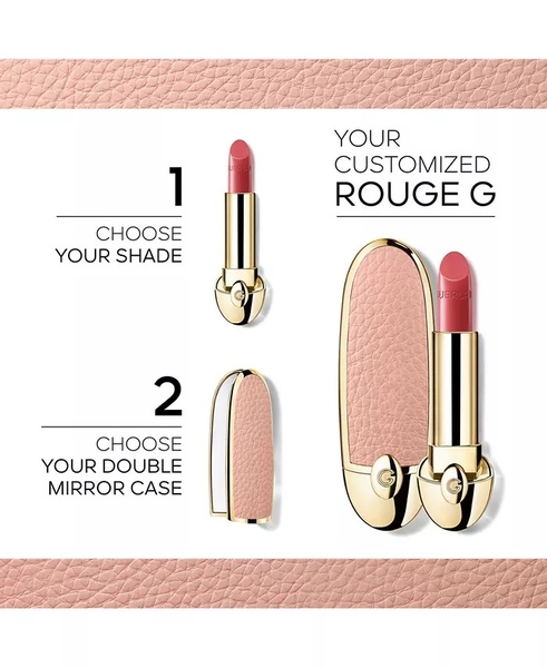 Thiết kế của thỏi son Guerlain Rouge G Refill Satin cũng đã được hiện đại hóa với một loạt hộp đựng đá quý hai mặt có thể tùy chỉnh, có thể được nạp lại theo ý muốn, thể hiện bí quyết và cam kết của Guerlain.