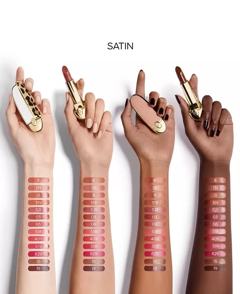 Guerlain Rouge G Refill Satin sở hữu bảng màu độc quyền được thiết kế riêng cho mọi phong cách và tông da. Mỗi sắc thái đều được các phòng thí nghiệm của Guerlain tỉ mỉ bào chế với các sắc tố màu mạnh mẽ được kết hợp từng chút một và được tăng cường bởi sức mạnh tăng cường màu sắc của dầu Abyssinian, cho màu sắc rực rỡ, tươi sáng.