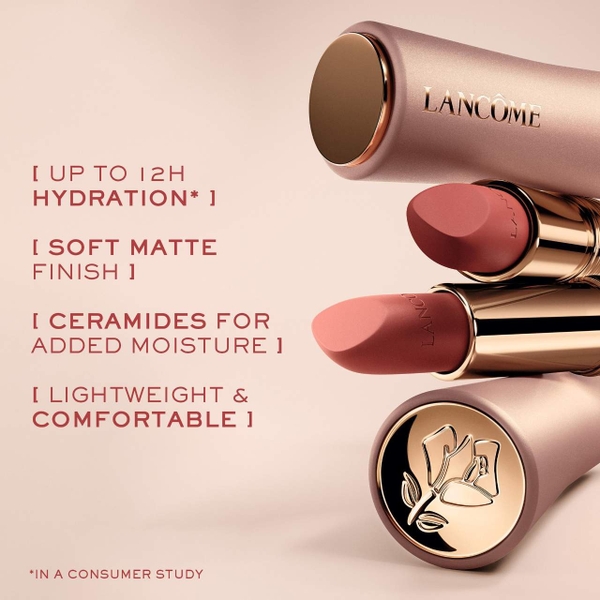 Son Thỏi Lancôme L'Absolu Rouge Intimatte là dòng son lì mềm mịn, được chiết xuất từ hoa hồng Grand Rose và ceramide, mang lại cảm giác thoải mái, dễ chịu lâu dài.