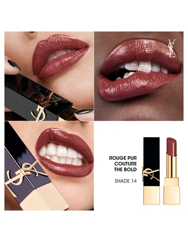 Son Thỏi YSL Rouge Pur Couture The Bold với các màu sắc nổi bật, màu nude táo bạo hoặc son môi đỏ nổi bật.