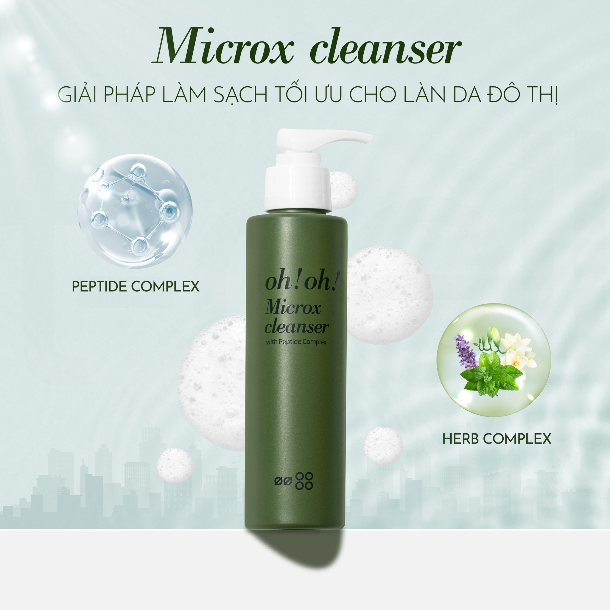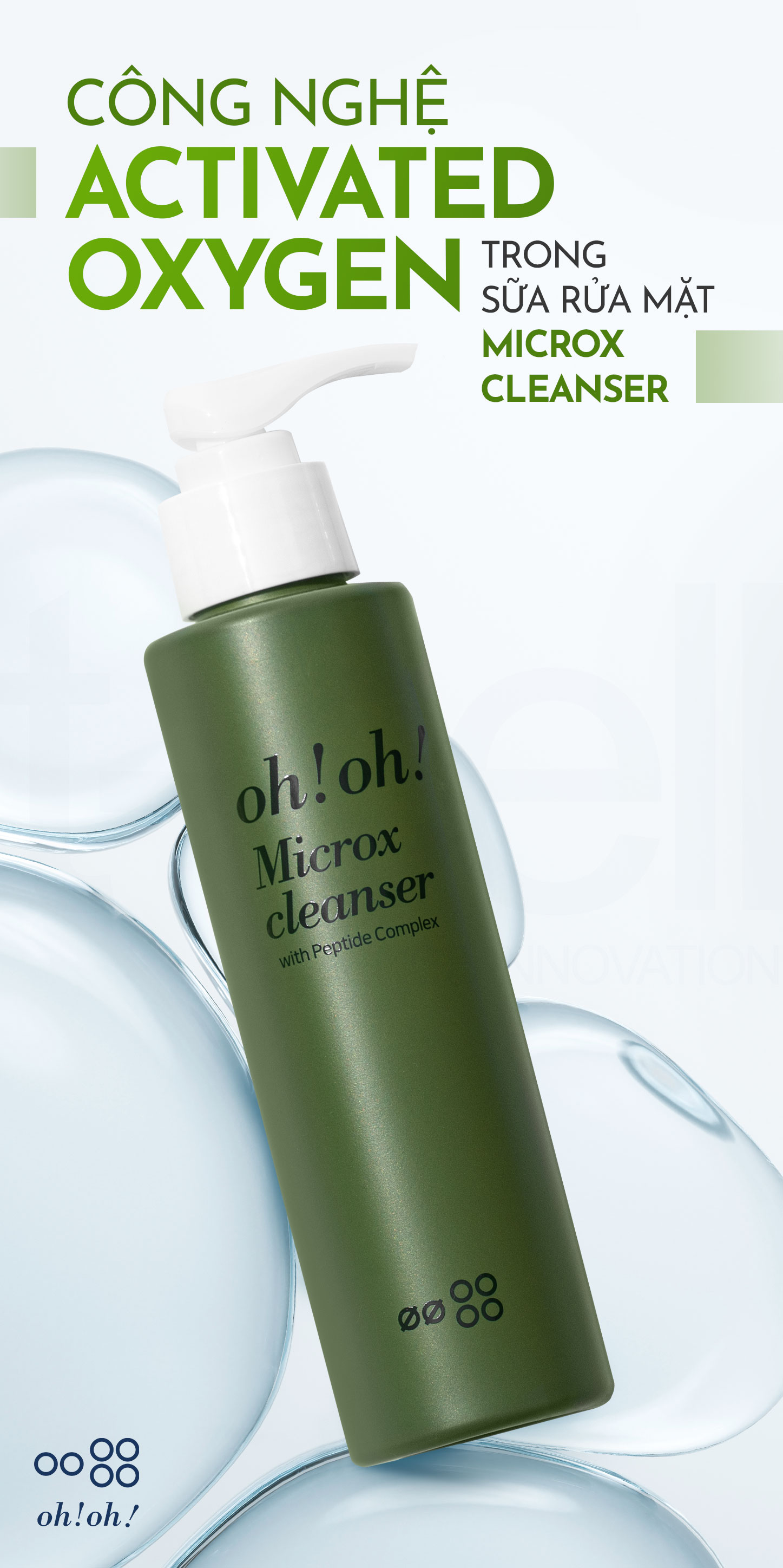 Oh!Oh! Microx Cleanser là dòng sữa rửa mặt sử dụng công nghệ active oxygen đặc biệt giúp loại bỏ tạp chất, dầu nhờn, cặn trang điểm khỏi lỗ chân lông, đem lại bề mặt da sạch thoáng, mịn màng tươi mới hơn. Phức hợp các peptide đa chức năng (Acetyl Hexapeptide-8, Copper Tripeptide-1, Palmitoyl Pentapeptide-4, Palmitoyl Tripeptide-1, Palmitoyl Tetrapeptide-7) đóng vai trò bảo vệ tự nhiên, kích thích cơ chế tự phục hồi của tế bào da, giảm thiểu tác động lão hóa và ngăn ngừa lão hóa sớm.