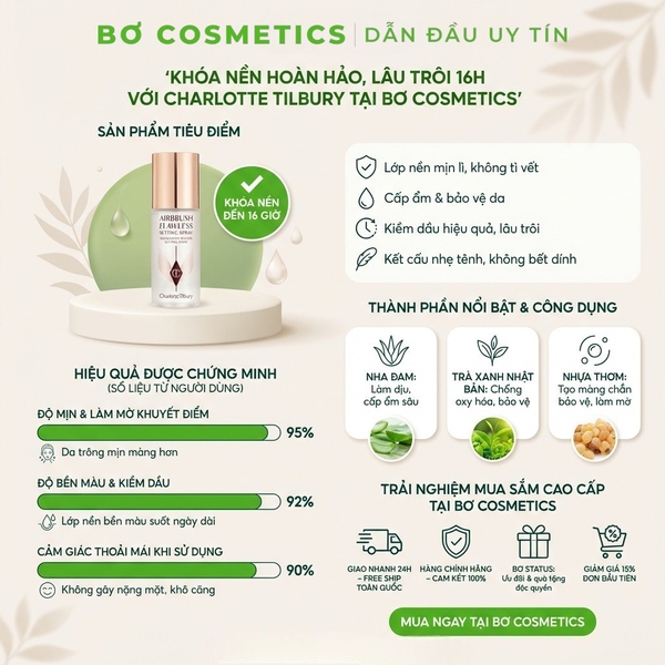 Cách sử dụng Charlotte Tilbury Airbrush Flawless Setting Spray hiệu quả:
