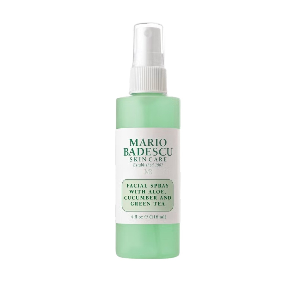 Xịt Khoáng Mario Badescu Facial Spray With Aloe, Cucumber and Green Tea 118ml là dòng xịt khoáng tươi mát giúp đánh thức làn da mệt mỏi và mang lại vẻ rạng rỡ tức thì. Sự kết hợp giữa dưa leo, trà xanh và lô hội giúp cấp ẩm nhanh chóng, chống oxy hóa và nuôi dưỡng làn da tươi mới mọi lúc, mọi nơi.